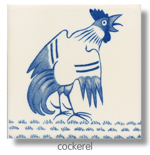 Tiles >> Victorian Reproduction Wall Tiles picturing Magpie, Crane, Cockeral, Hen & Chick, Duck, Goose