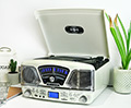 Chaînes hifi 4-en-1. Enregistrement MP3 à partir de vinyles, CD, radio et fichiers MP3. Nos tourne-disques Roxy 4 sont plus que de simples lecteurs analogiques : ils possèdent un lecteur CD et une radio. De plus, ils sont équipés d'un port USB qui vous permettra de brancher votre lecteur MP3 et d'en lire la musique. Ils sont également capables de convertir vos vinyles et CDs en fichiers MP3 sans avoir à les brancher à votre PC et à manipuler des logiciels compliqués.