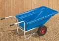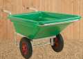 Originating from the tough environment of professional stable yards our Stubby tipping wheelbarrows are amazingly light to handle, well balanced, large and very strong. With a beautiful streamlined style with smooth rounded corners and a colossal top size, they allow high-peaked loads with exceptional manoeuvrability. Being mounted centrally on two large 40cm diameter pneumatic wheels (with 4-ply tyres!), more of your strength goes into moving the load, and less into balancing as with a single wheeler. The tipping feature is useful not just for emptying your barrow, but is also extremely useful for loading too - you can spade in earth without having to lift it over the top, and leaves can be raked in directly. What's more, with a maximum load capacity of 300 Kg (which you probably won't want to try to lift anyway), the Stubby Tipper is strong and durable as well as easy to use!