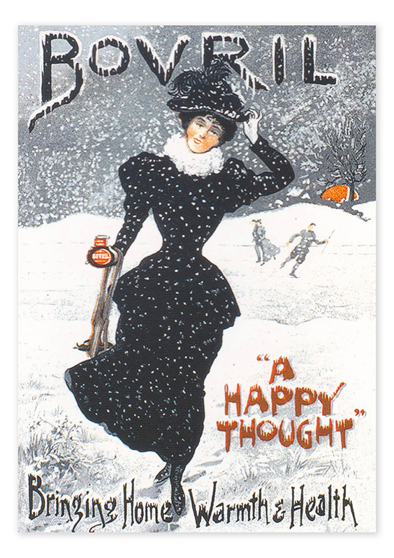 Bovril (Lady Skating) Postkarte . Art.-Nr. 01CH19. Unser Angebot an Postkarten besteht aus über 300 Karten, die Ihnen einen unvergleichlichen Einblick in die Geschichte britischen Konsumverhaltens bietet.