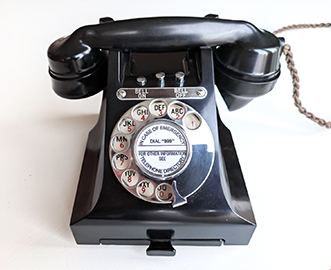 Das Bakelit-Telefon der 300er-Serie wurde ursprünglich 1932 entworfen und entwickelte sich zum Standardmodell des General Post Office (GPO). Es wurde in den 1940er und 1950er Jahren weit verbreitet produziert. Während die meisten Modelle schwarz waren, verfügten nicht alle über eine integrierte Schublade, was dieses Modell für Sammler besonders begehrenswert macht.