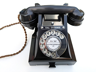 Erstmals eingeführt im Jahr 1932, wurde das Bakelit-Telefon der 300er-Serie schnell zum Standardmodell des General Post Office (GPO) und blieb in den 1940er und 1950er Jahren weit verbreitet. Während Schwarz die häufigste Farbe war, waren Varianten ohne integrierte Schublade seltener und daher besonders einzigartig.