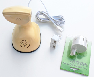 Es wird mit einer steckbaren mechanischen Telefonklingel und einem Zwei-Wege-Adapter geliefert, sodass die Klingel und das Telefon in dieselbe Steckdose eingesteckt werden können.