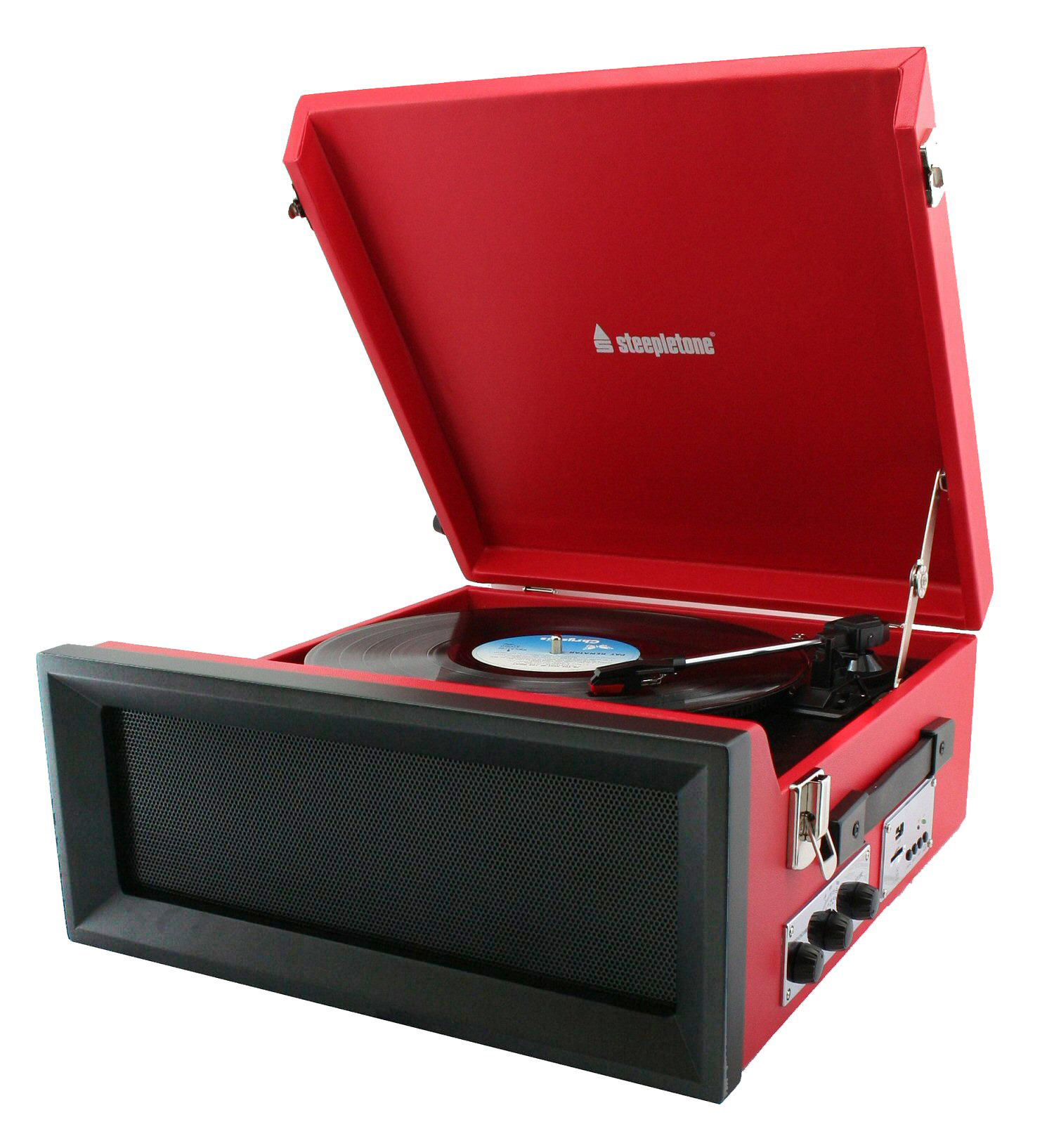 Tourne-Disque Stéreo style années 60 de Steepletone (Rouge)