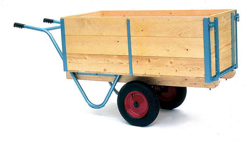 This excellent 2-wheel wheel barrow comes complete with a hinged detachable tail door, 40cm pneumatic wheels and bearings. With two 40cm pneumatic tyres balancing the barrow in the middle, you will not need to lift your load (as you do with a non-balanced barrow). Large 250kg load capacity. Overall dimensions: 213cm long x 81cm wide x 140cm high. Body dimensions: 152cm x 81cm x 61cm high. Weight 70Kg. - Moves clippings, leaves, pots, logs, paving and tools