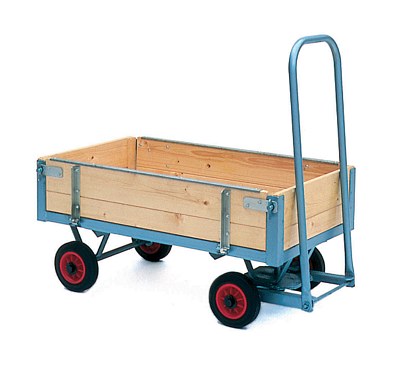 High-quality heavy duty cart with hinged sides, made from wood and steel, with 30cm pneumatic tyres and ball bearing wheel mounts. Can take loads up to 400 Kg. Overall Size (L)162cm x (W)81cm x (H)51cm. Body size (L)152cm x (W)76cm x (H)20cm. Weight 80 Kg. Approaching a third century of trolley manufacturing at Progress Works, Stubbs is still family owned. Originating as blacksmiths and agricultural implement manufacturers in 1836, Stubbs is Britains best traditional cart manufacturer. - Moves just about anything!