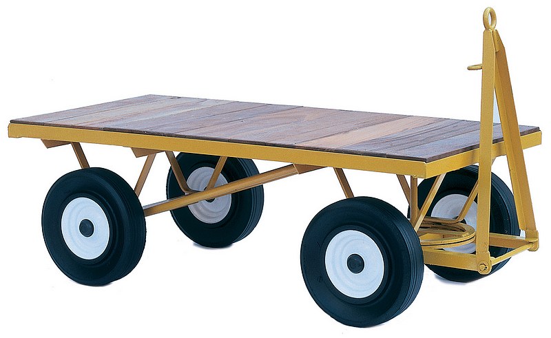 Our Stubbs estate carts with optional tow hitch are strong, but lightweight, and are designed to save you a lot of wasted effort. These carts are called Estate Carts (they are often deployed on large estates and farms), they are also ideal for a whole variety of uses, such as in domestic gardens by members of the public who are looking for something that is a step up from the types of carts that are generally available, and a bit special in terms quality, style and durability. Our heavy-duty estate carts have a large carrying platform. With four 50cm pneumatic tyres you will not need to lift your load (as you do with a barrow), you just pull it. Also, the smooth action rack steering means your cart won't tip over under heavy loads, even when you are turning corners. Our carts are constructed using heavy-gauge steel. They are ideal for shifting pots and planters, hauling logs, paving slabs and soil, or simply for carrying around garden tools and equipment. These are not the only four-wheeled carts available, but they are the best you'll find, and their traditional timeless steel and wooden construction style are a joy to behold - we are very happy to recommend them! - Loads up to 2000 Kg