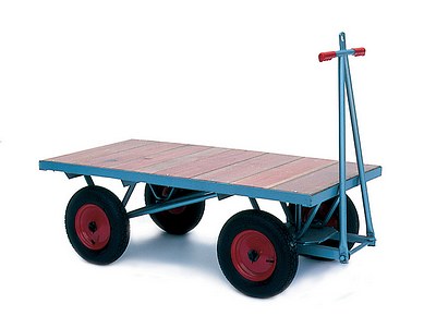 Our Stubbs estate carts with optional tow hitch are strong, but lightweight, and are designed to save you a lot of wasted effort. These carts are called Estate Carts (they are often deployed on large estates and farms), they are also ideal for a whole variety of uses, such as in domestic gardens by members of the public who are looking for something that is a step up from the types of carts that are generally available, and a bit special in terms quality, style and durability. Our heavy-duty estate carts have a large carrying platform. With four 40cm pneumatic tyres you will not need to lift your load (as you do with a barrow), you just pull it. Also, the smooth action rack steering means your cart won't tip over under heavy loads, even when you are turning corners. Our carts are constructed using heavy-gauge steel. They are ideal for shifting pots and planters, hauling logs, paving slabs and soil, or simply for carrying around garden tools and equipment. These are not the only four-wheeled carts available, but they are the best you'll find, and their traditional timeless steel and wooden construction style are a joy to behold - we are very happy to recommend them! - Loads up to 1000 Kg