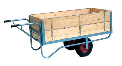 Our Stubbs balance carts are strong, and are designed to save you a lot of wasted effort. Although these our carts shown here are often deployed on large estates, farms & commercial environments, they are also ideal for use in domestic gardens by members of the public who are looking for something that is a step up from the types of carts that are generally available, and a bit special in terms quality, style and durability. Our Stubbs carts have a large carrying volume and are highly maneuverable too. With two 40cm pneumatic tyres balancing the barrow in the middle, you will not need to lift your load (as you do with a non-balanced barrow), you just push (or pull) it. Also, our balance carts are designed not to tip over under heavy loads, even when you are turning corners, which is always a risk with one-wheeled barrows. These carts are constructed in the traditional manner, using heavy-gauge steel and wood. They are ideal for moving clippings, shifting pots and planters, hauling logs, paving slabs and soil, or simply for carrying around garden tools, equipment. These are not the only two-wheeled carts available, but they are probably the best you'll find, and their traditional timeless steel and wooden construction style really are a joy to behold - we are very happy to recommend them! - Loads up to 500 Kg
