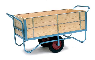 Our Stubbs balance carts are strong, and are designed to save you a lot of wasted effort. Although these our carts shown here are often deployed on large estates, farms & commercial environments, they are also ideal for use in domestic gardens by members of the public who are looking for something that is a step up from the types of carts that are generally available, and a bit special in terms quality, style and durability. Our Stubbs carts have a large carrying volume and are highly maneuverable too. With two 40cm pneumatic tyres balancing the barrow in the middle, you will not need to lift your load (as you do with a non-balanced barrow), you just push (or pull) it. Also, our balance carts are designed not to tip over under heavy loads, even when you are turning corners, which is always a risk with one-wheeled barrows. These carts are constructed in the traditional manner, using heavy-gauge steel and wood. They are ideal for moving clippings, shifting pots and planters, hauling logs, paving slabs and soil, or simply for carrying around garden tools, equipment. These are not the only two-wheeled carts available, but they are probably the best you'll find, and their traditional timeless steel and wooden construction style really are a joy to behold - we are very happy to recommend them! - Can take loads up to 500 Kg