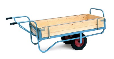 Our Stubbs balance carts are strong, and are designed to save you a lot of wasted effort. Although these our carts shown here are often deployed on large estates, farms & commercial environments, they are also ideal for use in domestic gardens by members of the public who are looking for something that is a step up from the types of carts that are generally available, and a bit special in terms quality, style and durability. Our Stubbs carts have a large carrying volume and are highly maneuverable too. With two 40cm pneumatic tyres balancing the barrow in the middle, you will not need to lift your load (as you do with a non-balanced barrow), you just push (or pull) it. Also, our balance carts are designed not to tip over under heavy loads, even when you are turning corners, which is always a risk with one-wheeled barrows. These carts are constructed in the traditional manner, using heavy-gauge steel and wood. They are ideal for moving clippings, shifting pots and planters, hauling logs, paving slabs and soil, or simply for carrying around garden tools, equipment. These are not the only two-wheeled carts available, but they are probably the best you'll find, and their traditional timeless steel and wooden construction style really are a joy to behold - we are very happy to recommend them! - Loads up to 500 Kg