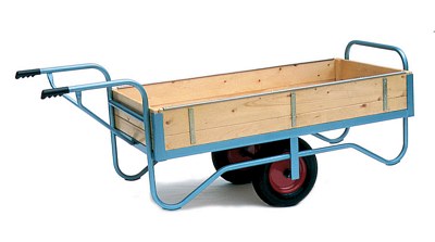 Our Stubbs balance carts are strong, and are designed to save you a lot of wasted effort. Although these our carts shown here are often deployed on large estates, farms & commercial environments, they are also ideal for use in domestic gardens by members of the public who are looking for something that is a step up from the types of carts that are generally available, and a bit special in terms quality, style and durability. Our Stubbs carts have a large carrying volume and are highly maneuverable too. With two 40cm pneumatic tyres balancing the barrow in the middle, you will not need to lift your load (as you do with a non-balanced barrow), you just push (or pull) it. Also, our balance carts are designed not to tip over under heavy loads, even when you are turning corners, which is always a risk with one-wheeled barrows. These carts are constructed in the traditional manner, using heavy-gauge steel and wood. They are ideal for moving clippings, shifting pots and planters, hauling logs, paving slabs and soil, or simply for carrying around garden tools, equipment. These are not the only two-wheeled carts available, but they are probably the best you'll find, and their traditional timeless steel and wooden construction style really are a joy to behold - we are very happy to recommend them!