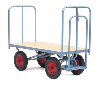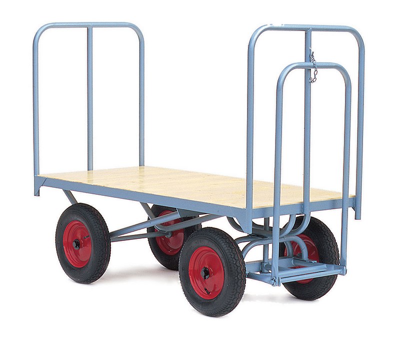High-quality heavy duty cart with high ends, made from wood and steel, with 40cm pneumatic tyres and ball bearing wheel mounts. Can take loads up to 500 Kg. Overall Size (L)194cm x (W)76cm x (H)127cm. Body size (L)183cm x (W)76cm x (H)76cm. Weight 64Kg. Optional tow-hitch and parking brake available. Approaching a third century of trolley manufacturing at Progress Works, Stubbs is still family owned. Originating as blacksmiths and agricultural implement manufacturers in 1836, Stubbs is Britains best traditional cart manufacturer. - Moves clippings, leaves, pots, logs, paving and tools, and