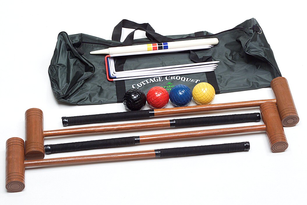 This small sized croquet set is ideal for the smaller garden and perfect for adult beginners, children and general family play. - 4 x 12oz painted wood croquet balls