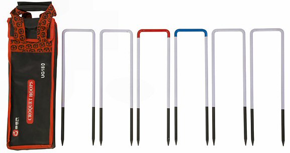 With a 4" gap suitable for all croquet ball sizes, our excellent value 17.5" high steel croquet hoops are as supplied in our Uber Garden, Pro and Junior Executive Croquet Sets. They are designed to leave the regulation 12" height above ground when sunk into the lawn. Supplied with a Canvas transport / storage bag.