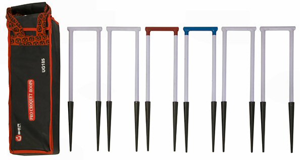 With a 4" gap suitable for all croquet ball sizes, our excellent value 20" high steel croquet hoops are as supplied in our Uber Executive and Championship Croquet Sets. They are designed to leave the regulation 12" height above ground when sunk into the lawn. Supplied with a Canvas transport / storage bag.