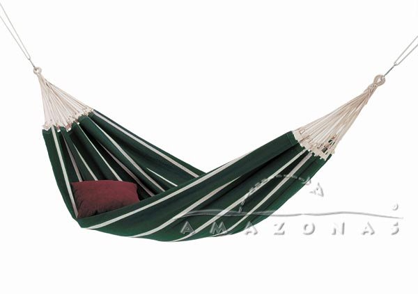 The Santiago Pinia is one of our favourite hammocks in our Santiago Hammock range, perfect for relaxing under pine trees, shaded from the hot Mediterranean sun. With its green stripey pattern it will blend well into any garden setting, making it a very popular choice. Our Santiago Pinia hammock is manufactured by a company called Amazonas and originates from from the Creara region in the North East of Brazil where hammock making has a long tradition - the production of our high-quality hammocks provides over 100 people with secure jobs, at above-average wages.